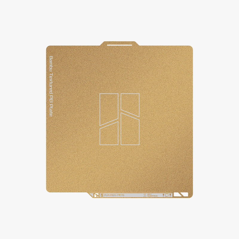 Bambu Lab - Textured PEI Plate (Gold) er en førsteklasses byggeplade designet til at forbedre din 3D-printoplevelse. Denne plade er fremstillet af kvalitets PEI (Polyetherimide) materiale og har en smuk guldtekstur, der ikke kun er æstetisk tiltalende, men også praktisk.