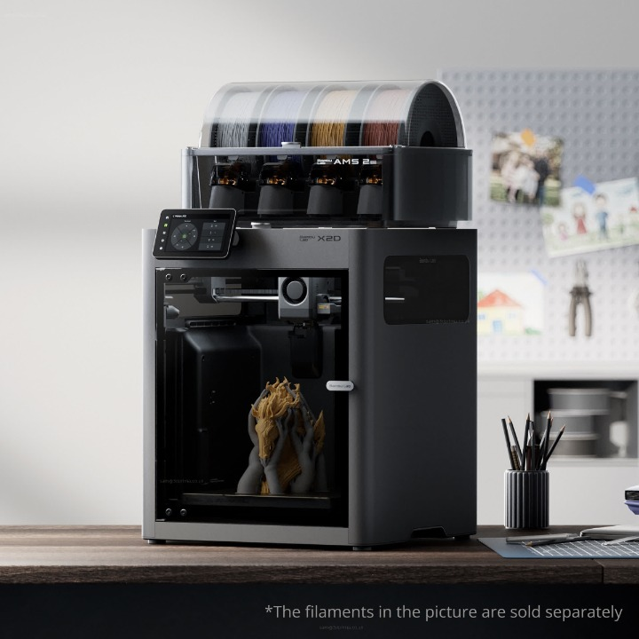 X2D er udstyret med et 3-trins filtreringssystem bestående af G3 pre-filter, HEPA H12 og aktivt kul. Det sikrer et renere printmiljø, især ved brug af tekniske materialer.