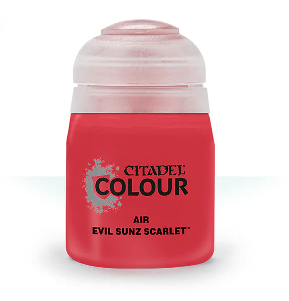 Citadel Air er akrylmaling der er beregnet til brug i en airbrush. Denne bøtte indeholder 24ml Evil Sunz Scarlet.