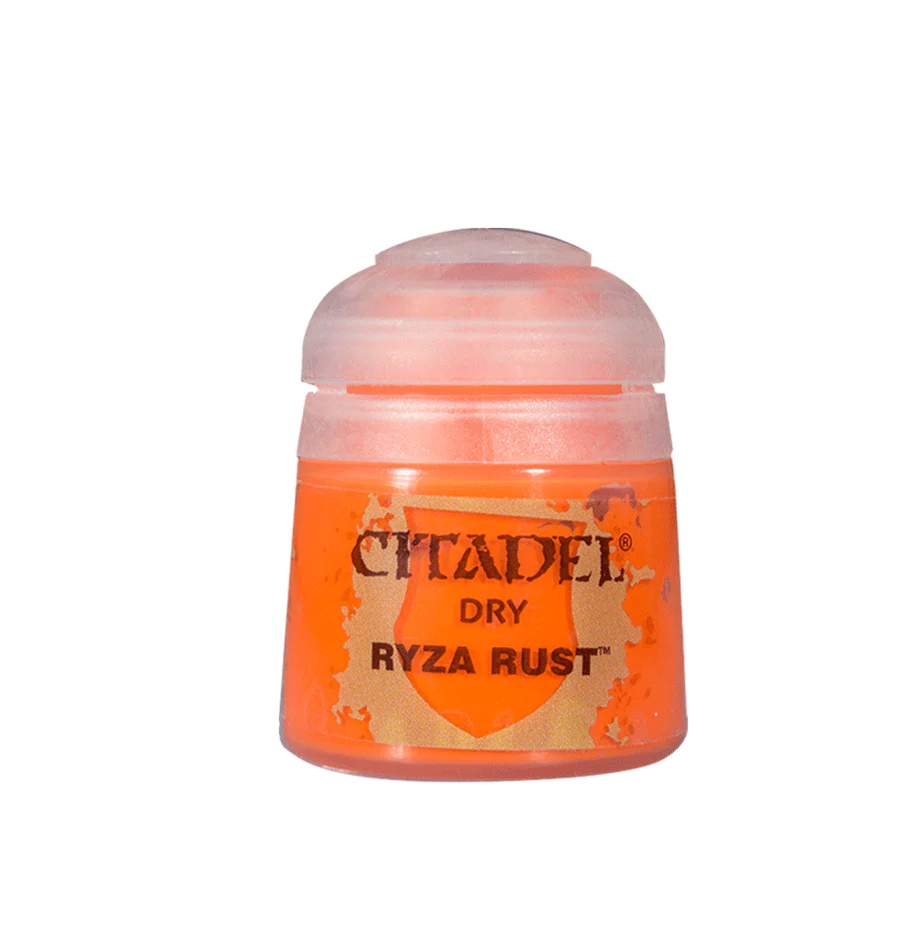 Citadel Dry akrylmaling har en tykkere konsistens end andre Citadel-malinger, hvilket gør dem perfekte til drybrush-teknikken, der er en nyttig måde at fremhæve detaljer hurtigt og let. Denne bøtte indeholder 12ml Ryza Rust.