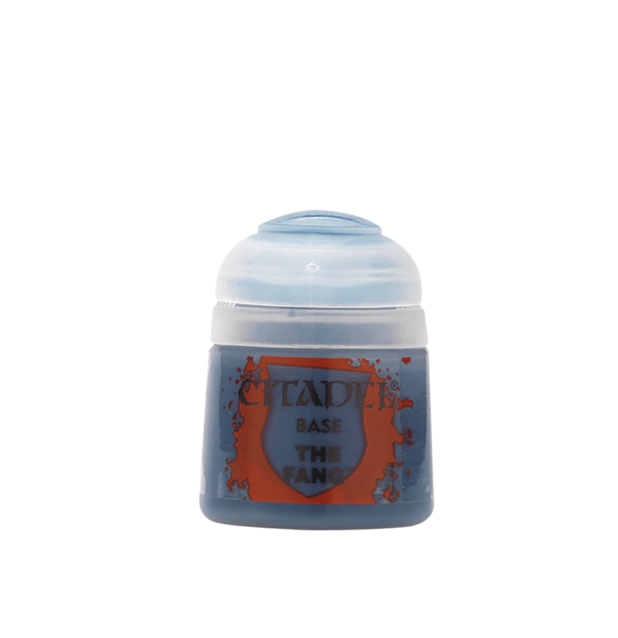 Citadel Base er akrylmaling der bruges til at male basecoat på modeller der har fået en undercoat (primer) for at give et fundament til at bygge videre på med shades, layers og dry-malinger. Denne bøtte indeholder 12ml The Fang.