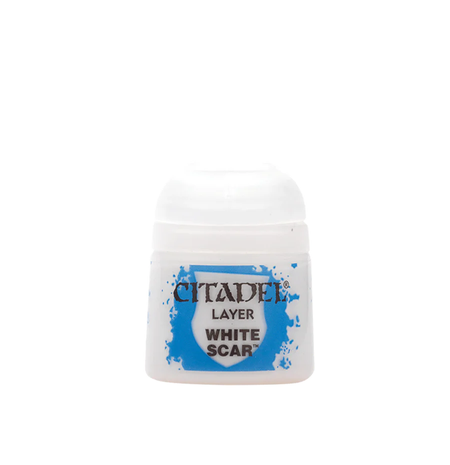 Citadel Layer er akrylmaling der bruges til at male ydre lag ovenpå en basecoat for at give definition og fremhæve detaljer. Denne bøtte indeholder 12ml White Scar.
