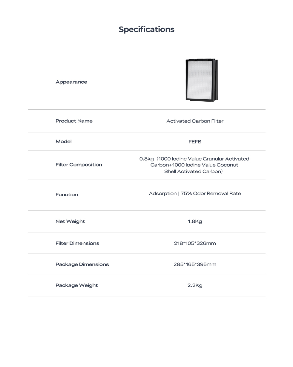 Med aktivt kul sikrer filteret en høj grad af luftfiltrering, hvilket bidrager til både bedre komfort og et sundere arbejdsområde. Det er nemt at installere og udskifte, så du altid kan opretholde en optimal filtreringsydelse.