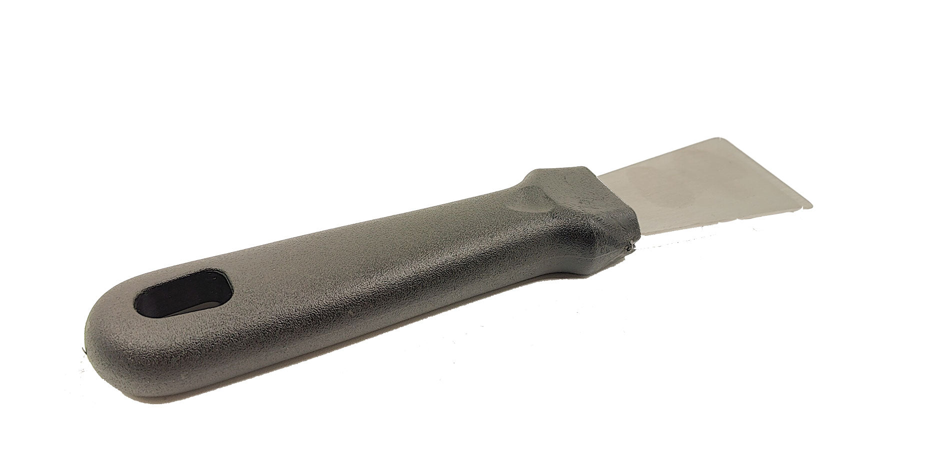 Et perfekt værktøj til fjernelse af emner fra byggepladen på din 3D printer. Denne model er i kraftig stål og har en klinge på 5 cm og skaft på 12 cm.