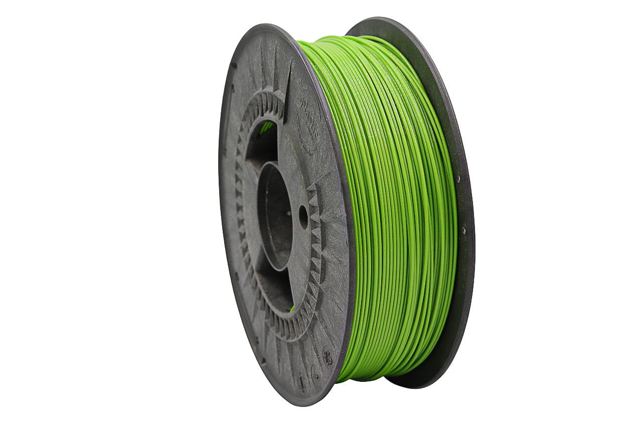 Oplev enestående kvalitet og bæredygtighed med FilaLab PETG Green filament, præsenteret på en spole fremstillet af genbrugsplast og indeholdende 1 kg af filament.