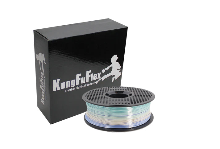 KungFuFlex er et meget fleksibelt materiale, som indenfor TPU filament, er nemt anvendeligt i de fleste FDM 3D printere. Materialet har en god elasticitet og printes omkring 210-235°C hotend og gerne med 60-80°C heatbed - det kan dog uden de store problemer printes uden heatbed.