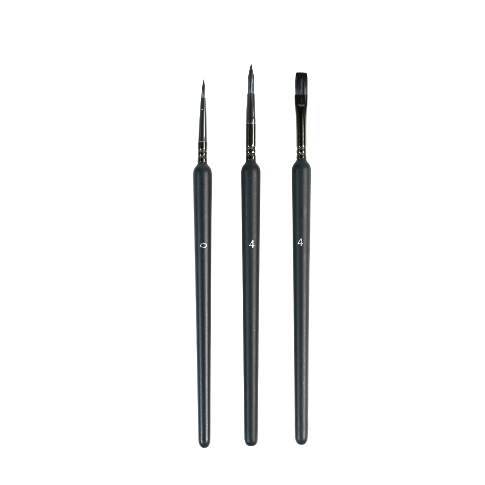 Lang, tynd pensel: ideel til bogstaver, konturer og præcise linjer.