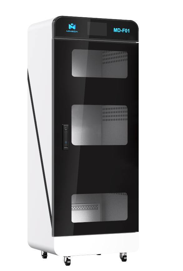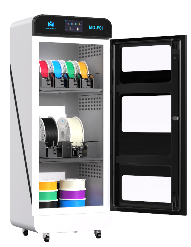 Mingda MD-F01 er en professionel filament-opbevarings- og feeding-enhed designet til krævende 3D-printmiljøer. Med støtte for store spoler, automatisk filamentudskiftning, intelligent fugt- og temperaturkontrol samt overvågning af forbrug tilbyder den en “set-and-forget” løsning, der øger pålideligheden og effektiviteten i printprocessen.