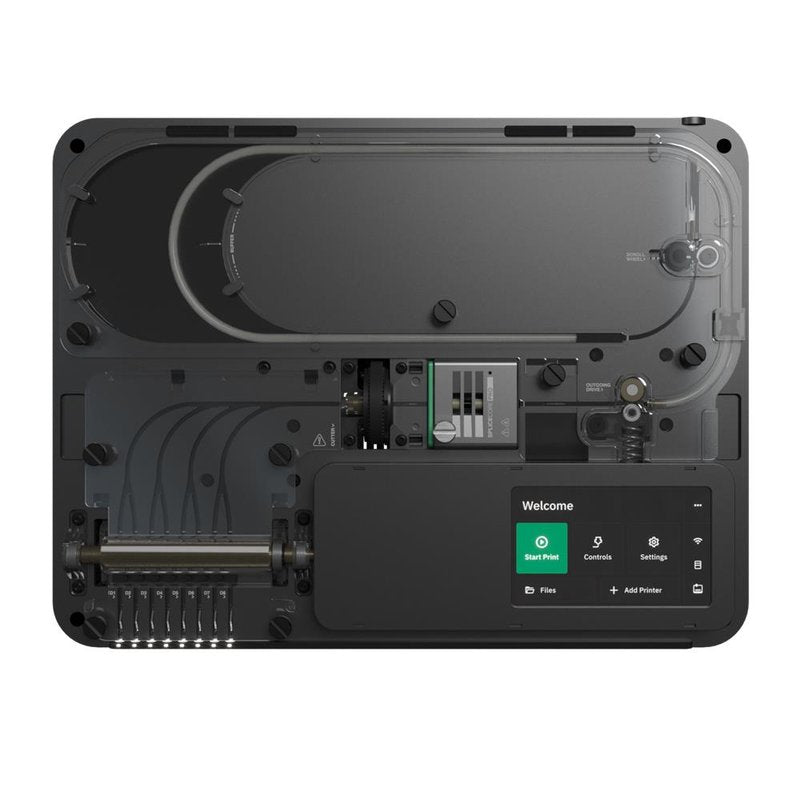 3) Tilslut: Palette 3's optimerede Splice Core splejser filamenter sammen på en forbedret og effektiv måde med en ekstra blæser til at køle filamenttråden ned, når den forlader splejsekernen, hvilket fremskynder processen.
