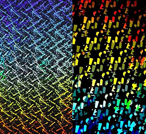 Denne byggeplade er dobbletsidet med lyssværdslignende mønster på den ene side og små geometriske "flager" på den anden, der begge efterlader en farverigt og funklende overflade på dine emner.