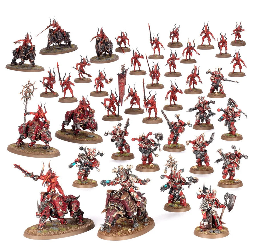 Denne Battleforce kombinerer dødelige helte, lynhurtige dæmoniske ryttere og rasende infanteri i én voldsom pakke, perfekt som fundament for en aggressiv Chaos- eller World Eaters-hær.