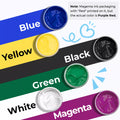 Med dette sæt får du 6 flotte basisfarver: sort, gul, magenta, blå, grøn og hvid