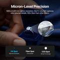 Software understøtter både 2D‑design (SVG, DXF, PNG etc.) og 3D‑filer (STL, OBJ, 3MF etc.), og med AI‑drevne funktioner kan tekst og billeder konverteres til 3D‑gravering uden avanceret CAD‑kendskab. Autofokus, automatisk bedømmelse af overflade, kamerabaset positionering og smart parameterforslag gør workflow intuitiv og effektiv. -