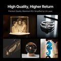 Maskinen excellerer i indgravering inde i glas og krystal, inklusive 3D‑indgravering, indbores i krystaller og glasblokke — uden at overfladen mærkes. Surface forbliver uberørt mens det indre design realiseres, hvilket åbner op for kunst, smykker og premium‑gaver med høj æstetisk værdi. -