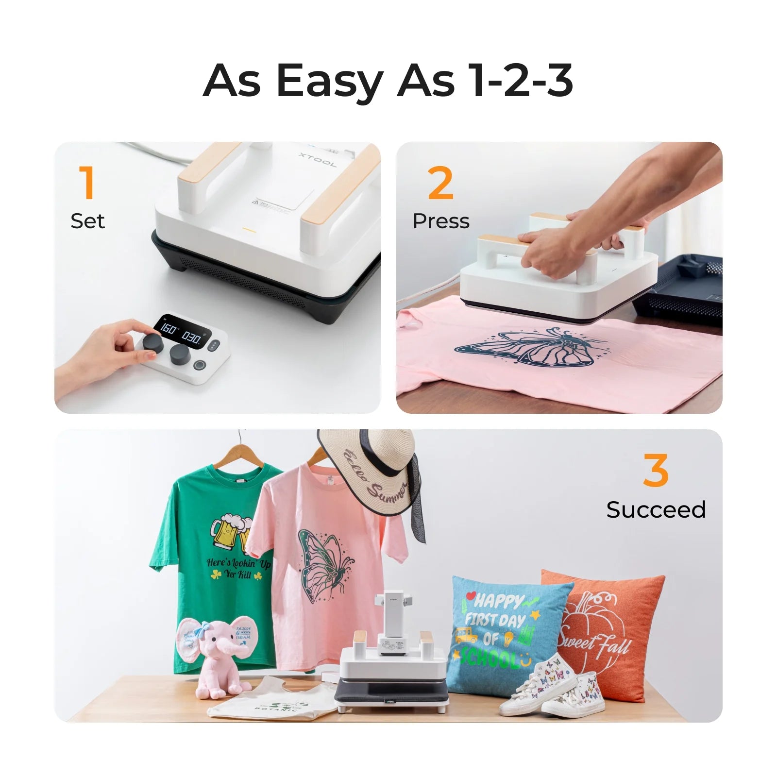 Med xTool Smart Heat Press All-in-One Kit får du en pålidelig og alsidig varmepresse, der kombinerer præcision, effektivitet og sikkerhed. Perfekt til både hobby, små virksomheder og kreative værksteder.