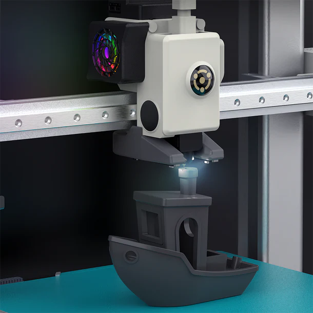 Blæseren er udstyret med dedikeret dysebelysning, som enten kan følge RGB-lyset eller give justerbart hvidt lys – ideelt til overvågning af første lag, vedhæftning og printdetaljer i realtid.